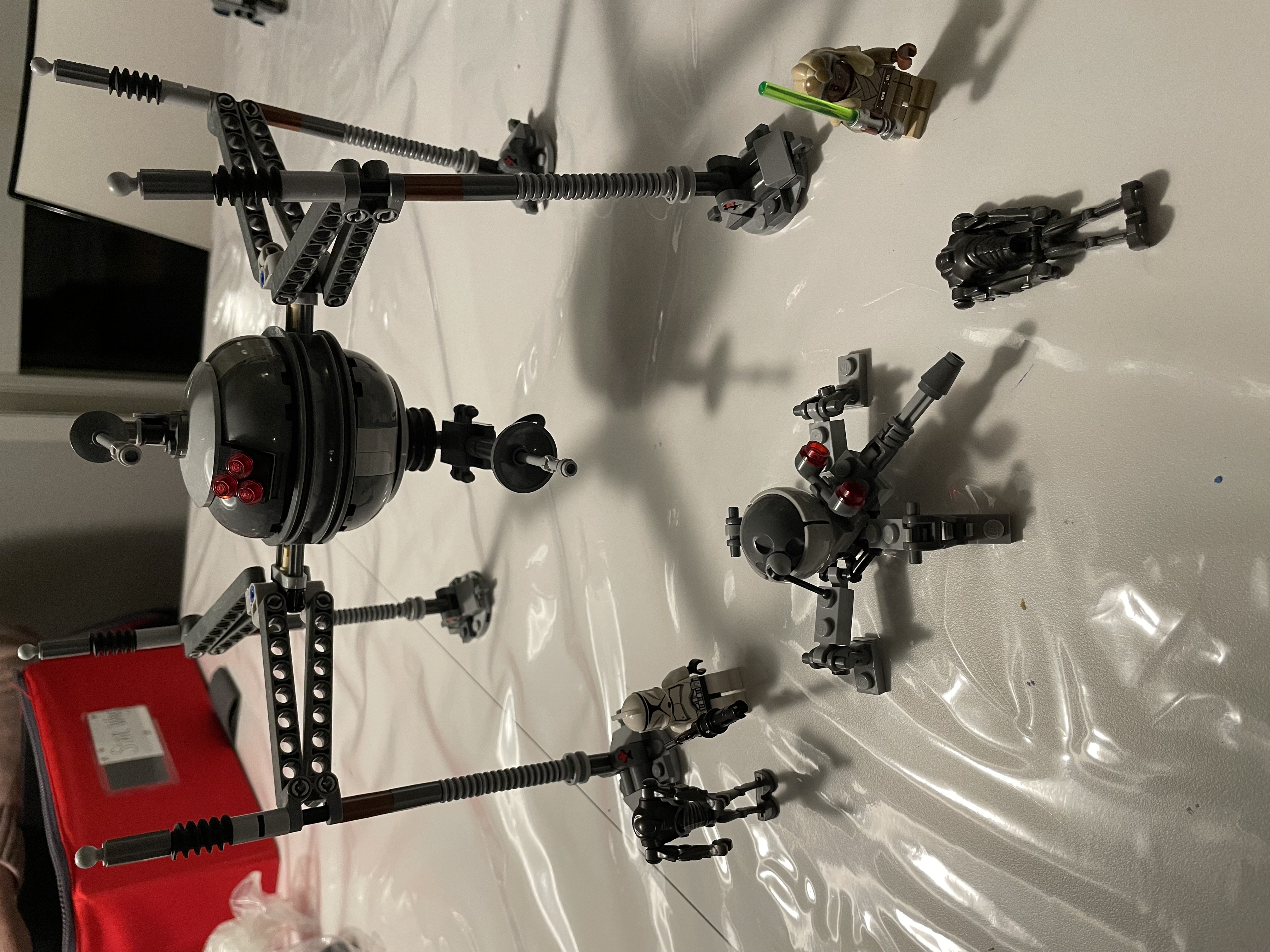 Komplet sæt pånær æsken. Meget pæn pånær en af de lange grå figurer, der har fået limet ben på.